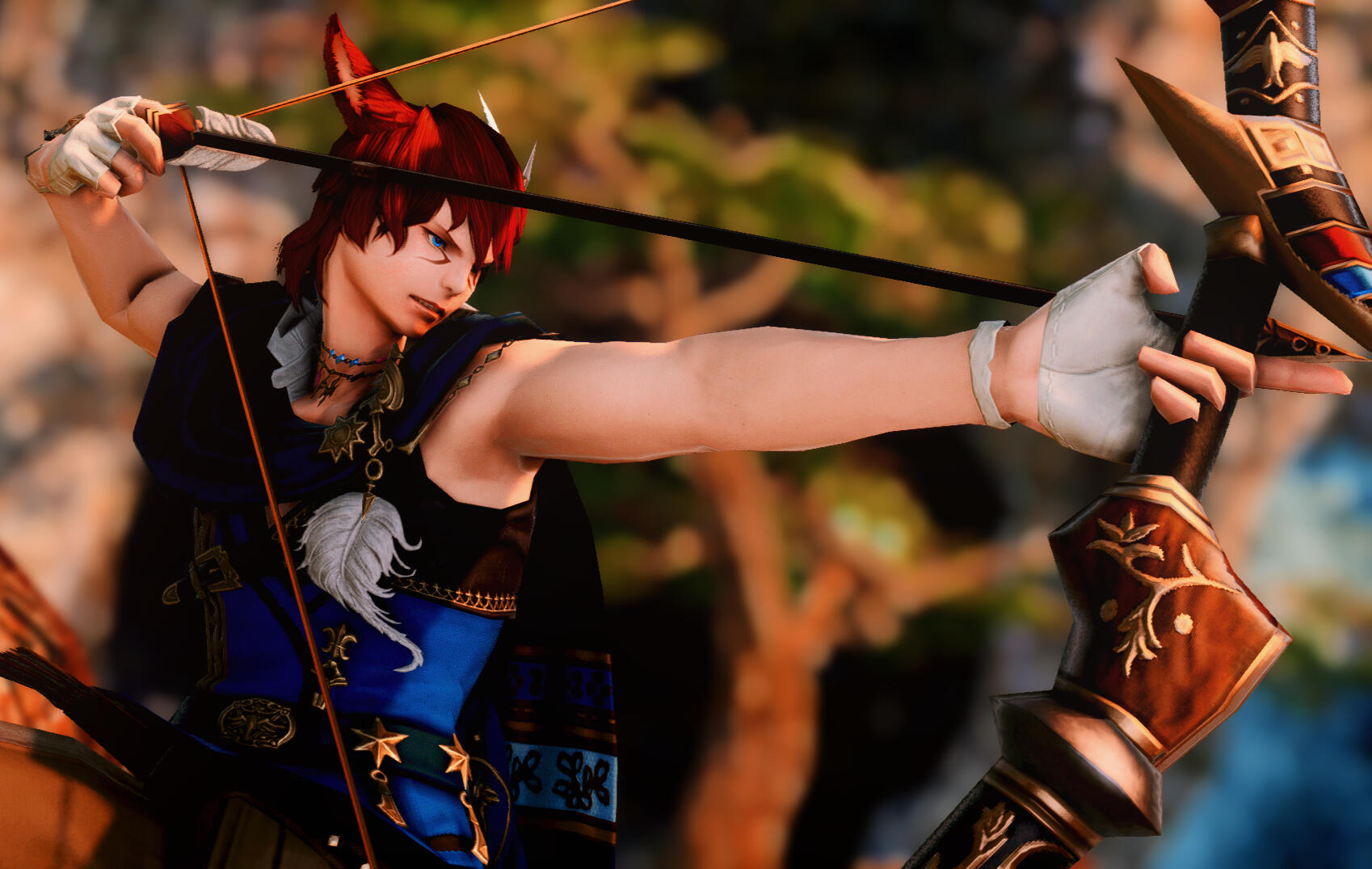 Once a proud mercenary and father, Valerian spent his youth traveling the world, taking on odd jobs as an Independent contractor. One day while returning home to Gridania, his home was attacked by those who wished him dead, killing both his son and wife in a fire.Soon after his family's tragedy, he put his days as a Merc behind him, blaming himself for not being strong enough to protect his family.A few years had passed since that day, and he soon settled down, refusing to take on any odd jobs, only using his bow to hunt while occasionally performing as a bard for the local tavern or events.One day, while returning home from a hunting trip, he came across Lucipher and his sister Ar'ru fleeing from two Diremites closing in on them. Without a second thought, he raised his bow and arrow to the beasts, striking both monsters down, helping the children out, and escorting the two home.Valerian thought that would have been the last of them until young Lucipher tracked him down, asking him to teach him how to use the bow and asking to be like him.At first, the bard refused, turning Lucipher down at every chance he got, only to one day find the young miqo'te secretly trying to shoot an arrow at a dummy while out in the woods. Curious, he watched the boy for several days seeing him in the same spot each time trying to practice.One evening, the man pulled the boy to the side, asking for his reasons for taking up the bow, only to get a simple answer: to protect his family and help those in need one day. With a look of shock, a memory of his son saying the same thing crossed his mind causing the man to weep as he remembered how he had lost those he couldn't protect.Since that day, Valerian had taken Lucipher on as his apprentice, teaching him the bow and arrow ways and using Lucipher's vocal talent to become a skilled bard to protect those dear to him.